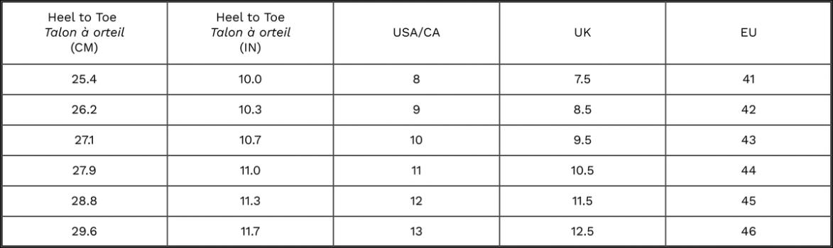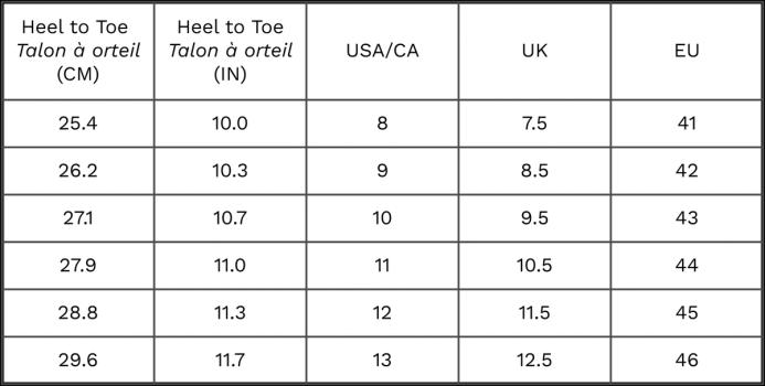 Offered in whole sizes. For an optimal fit, we suggest choosing the next size up if you are between sizes.